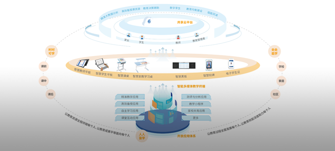 融合前沿信息技術(shù),以智能教學(xué)終端為載體,聚合多類(lèi)型高質(zhì)量數(shù)字教育資源,建設(shè)人人皆學(xué)、處處能學(xué)、時(shí)時(shí)可學(xué)的智慧教育生態(tài)環(huán)境。
